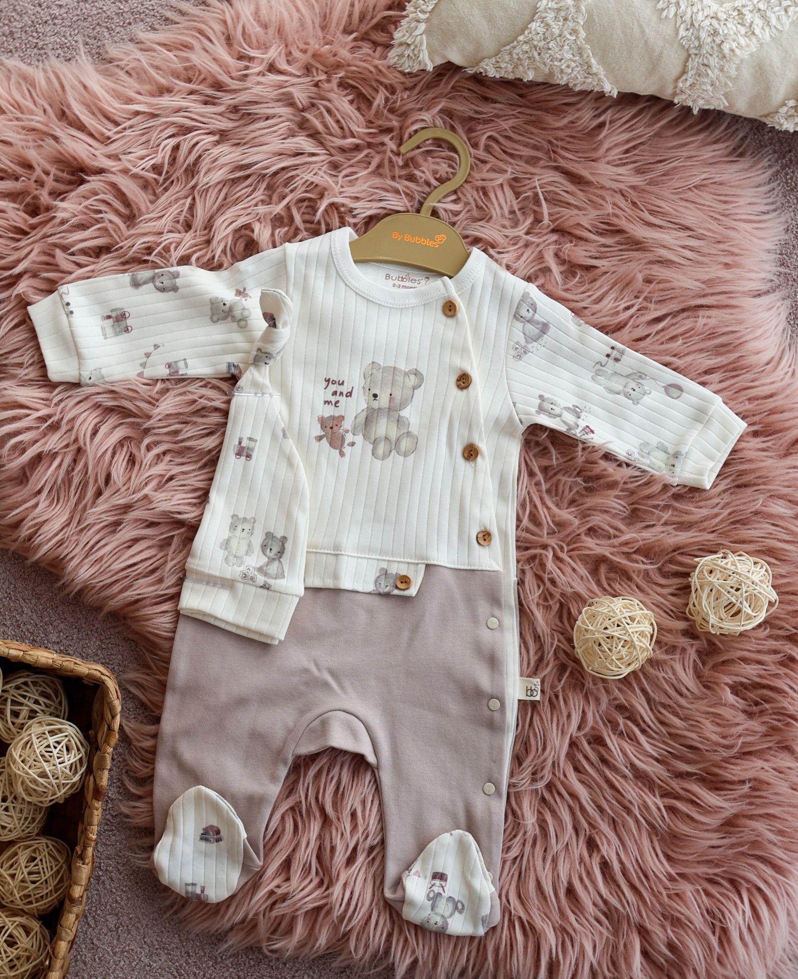 Nežan bebi komplet brenda Bubbles, izrađen od 100% organskog pamuka koji pruža izuzetnu mekoću i udobnost.