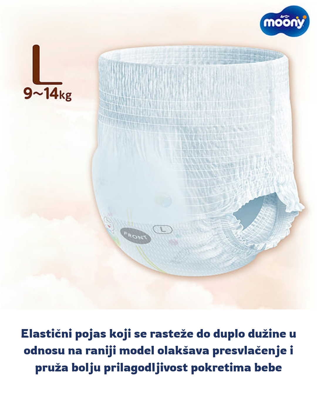 Moony Natural pelene gaćice su specijalno dizajnirane za bebe sa najosetljivijom kožom.