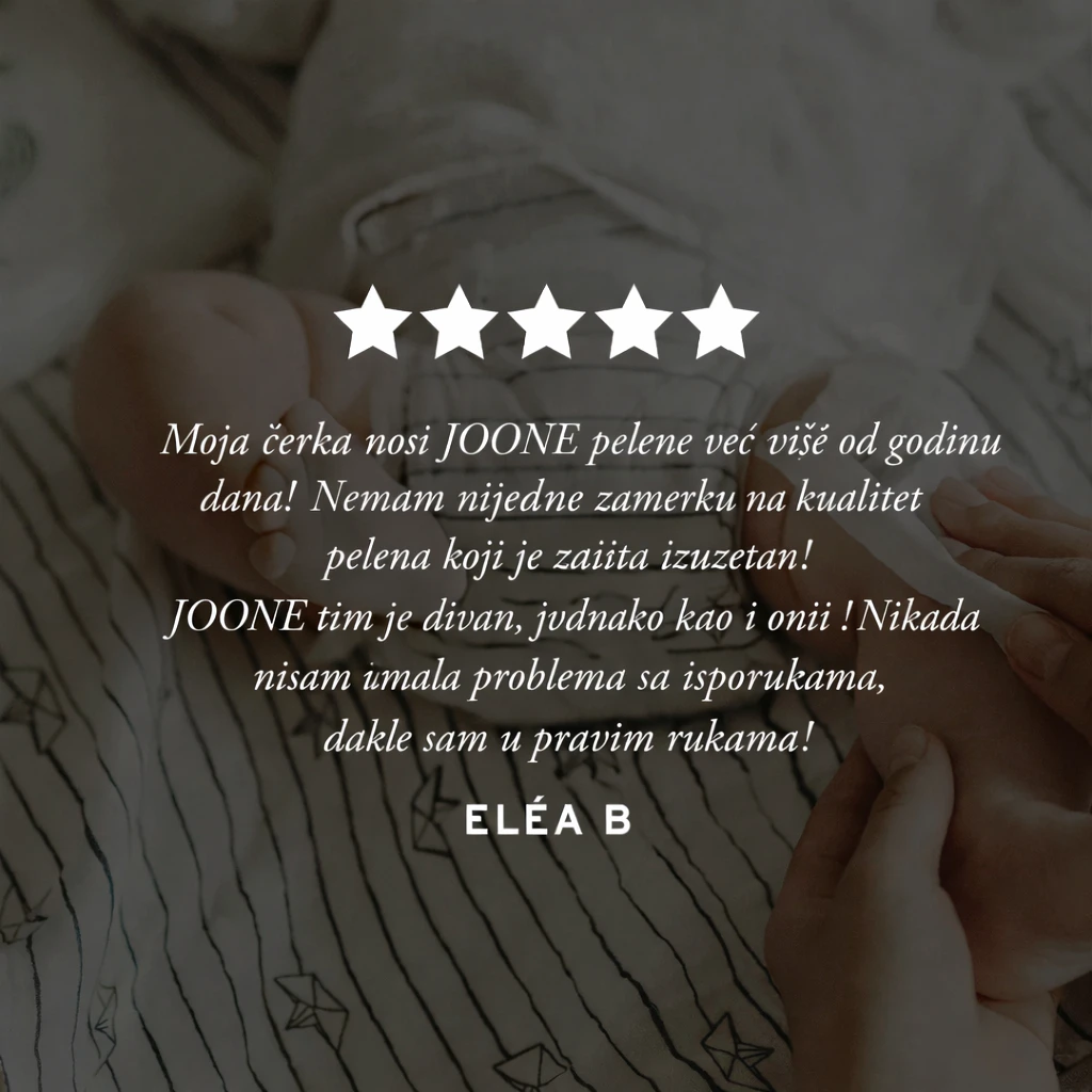 Zato su JOONE pelene osmišljene od pažljivo odabranih materijala prirodnog porekla, bez hlora, bez mirisa i bez nepotrebnih dodataka – samo čista, sigurna i pouzdana zaštita.