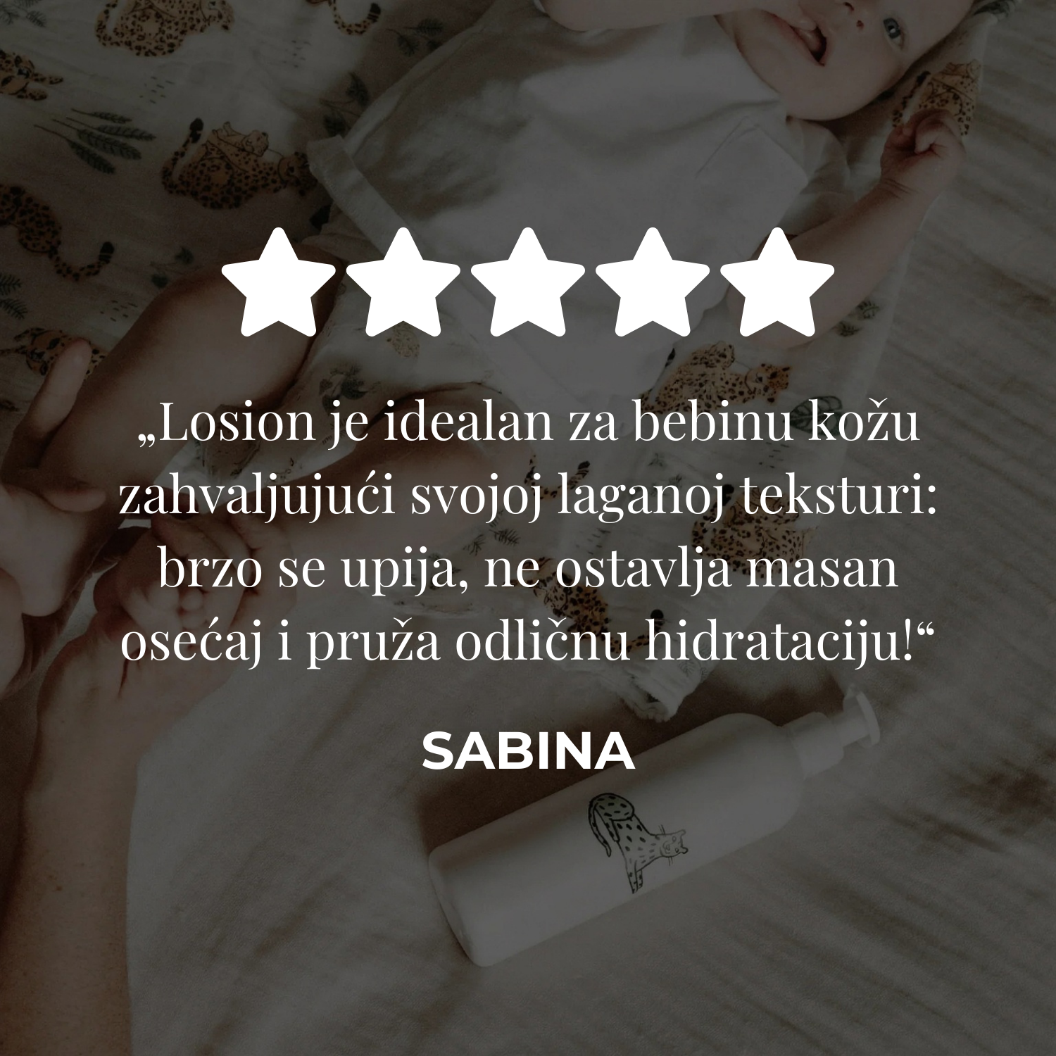 Hipoalergena i dermatološki testirana formula ne sadrži agresivne sastojke i nežno neguje kožu bez iritacija. Losion pruža hidrataciju i umirenje, čak i nakon kupanja ili boravka na hladnijem vazduhu.