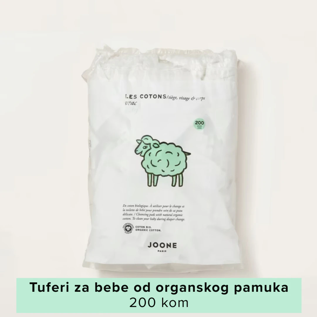 100% organski pamučni tuferi. Njihova izuzetna mekoća nežno neguje krhku bebinu kožu i pomaže u sprečavanju iritacija.