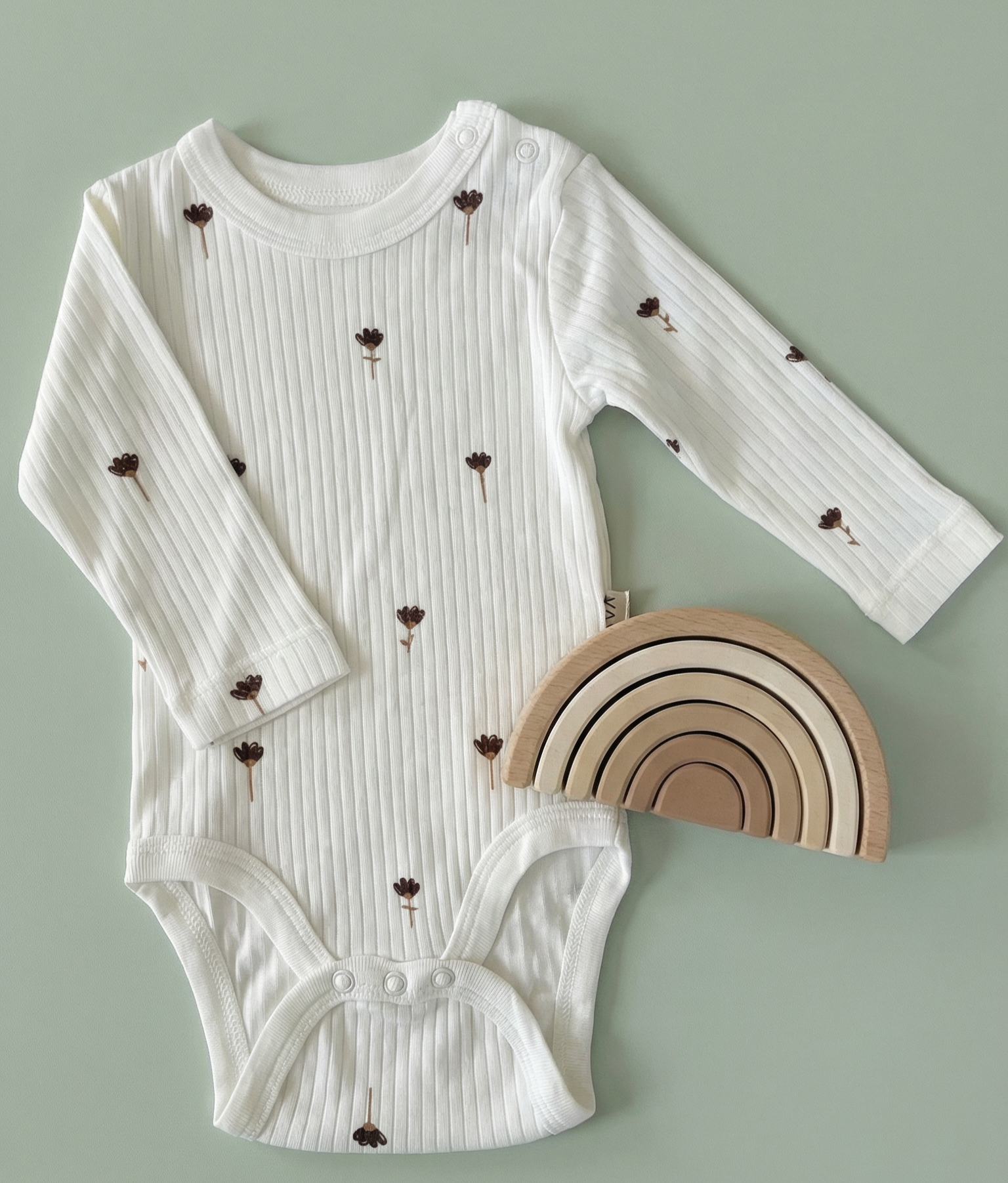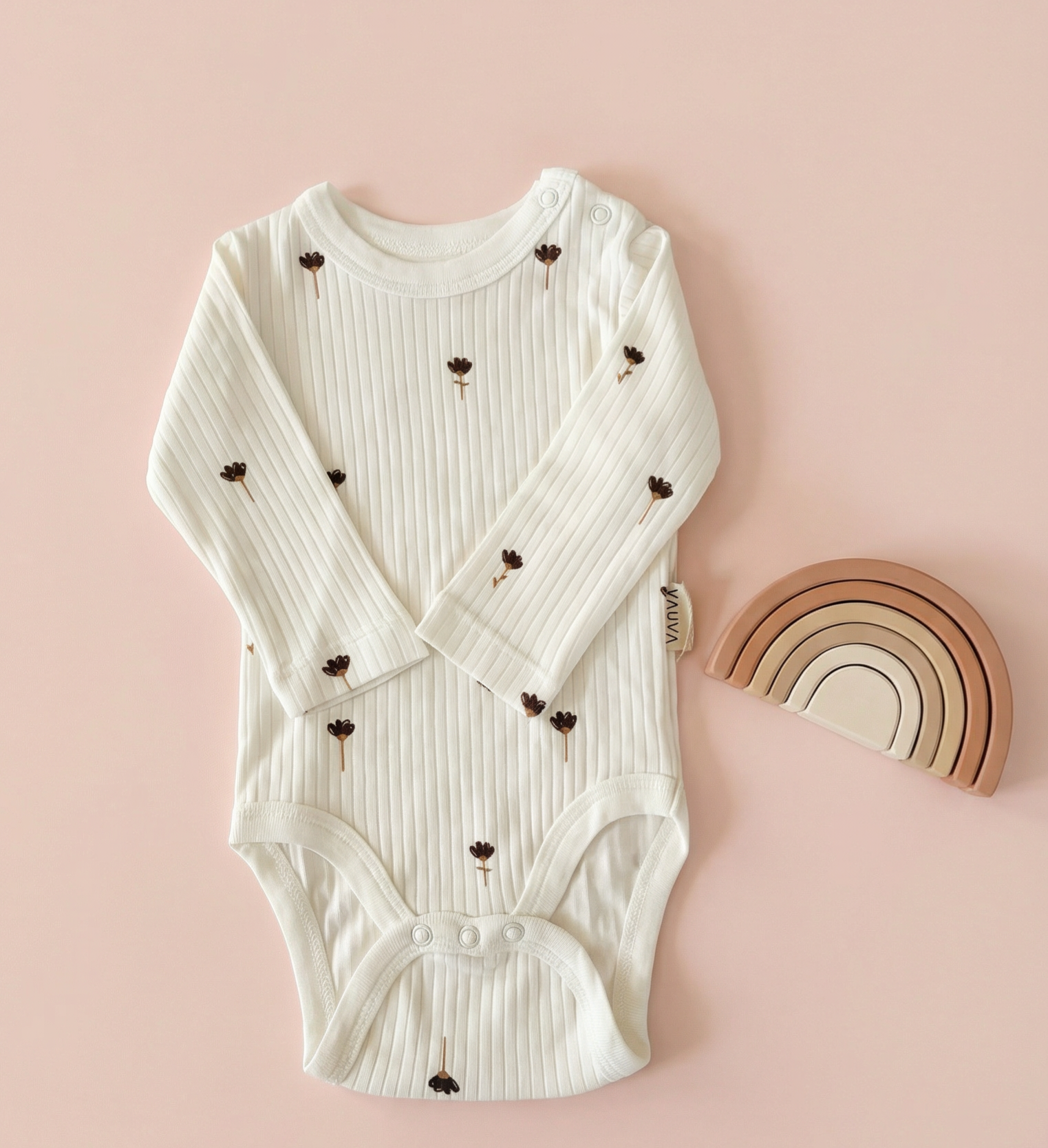 Nežan i udoban VAUVA bodić za bebe sa cvetnim dezenom savršen je izbor za svakodnevno nošenje. Izrađen od mekog i prozračnog pamuka, prijatan je za osetljivu bebinu kožu i omogućava maksimalnu udobnost tokom celog dana.