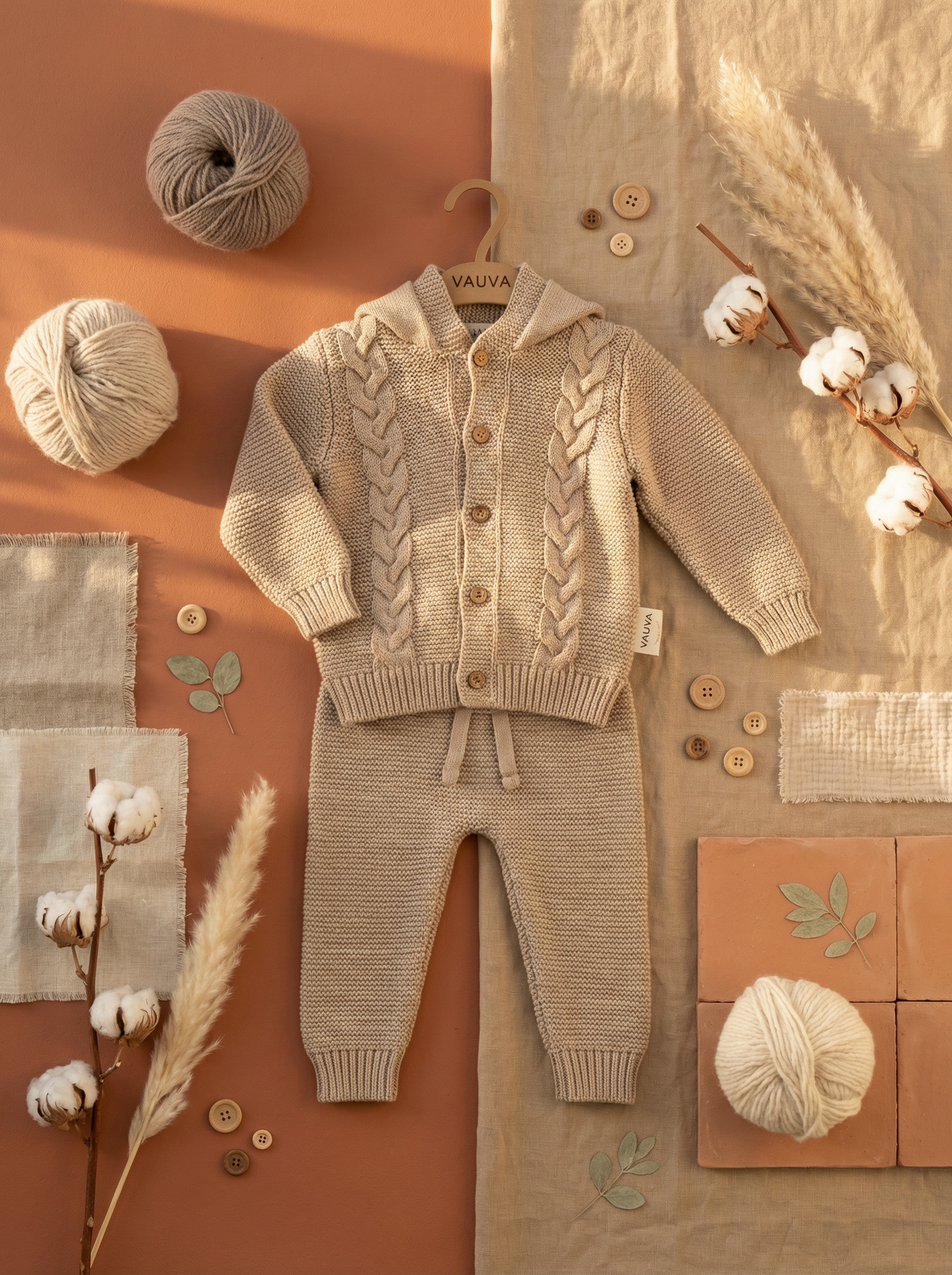 VAUVA set 2/1 pantalone i dukserica sa kapuljačom, 24-36m, 92-98cm, Mokri pesak
